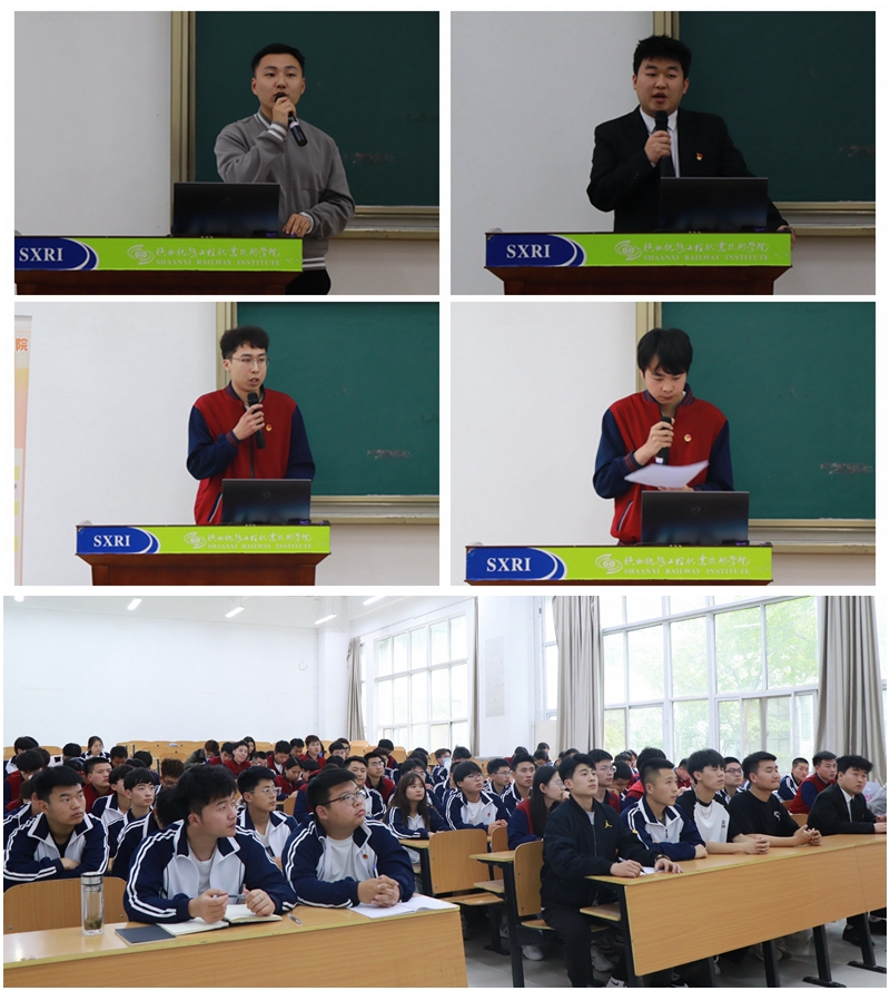 会议开始,铁成工程物流3211郭修然同学为作题为《全面建成小康社会的历史意义》主题宣讲。该作品是由马克思主义学院与团委共同指导,并以优异成绩选入“青春筑梦二十大 团结奋斗向未来”陕西省高校学生微宣讲展示活动,郭修然同学成功入选全省高校学习宣传贯彻党的二十大精神大学生宣讲队成员,全省仅40名学生入选。