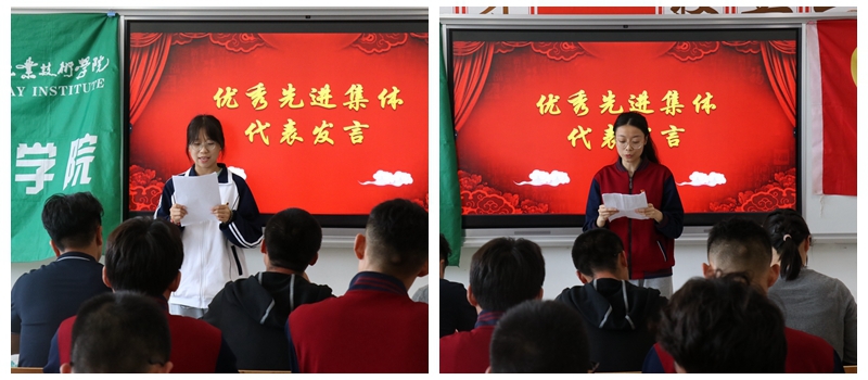 颁奖过后,学生代表发表获奖感言,他们表示“优秀先进集体,这是学校给我们的一份荣誉,更是一种激励,一种鞭策。在以后的日子里,我们会更加努力,我们会更积极地投入于学习,参与活动。”大会第五项,团总支副书记韩俨带领全体与会师生重温入团誓词,带领大家重新回顾入团初心。
