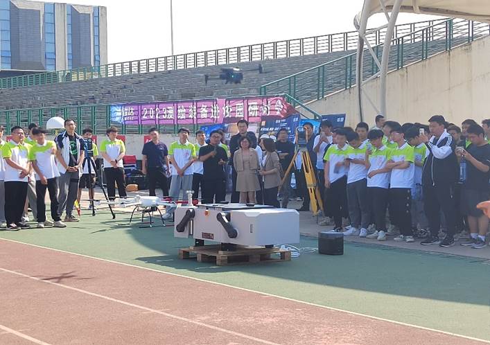 随后,技术人员向师生讲解三维激光扫描仪、GPS接收机、激光雷达、各种型号无人机参数、搭载的相机和无人测量船等设备。同时技术人员还向师生演示无人机机场的使用,详细讲解了无人机机场的原理和应用前景。
