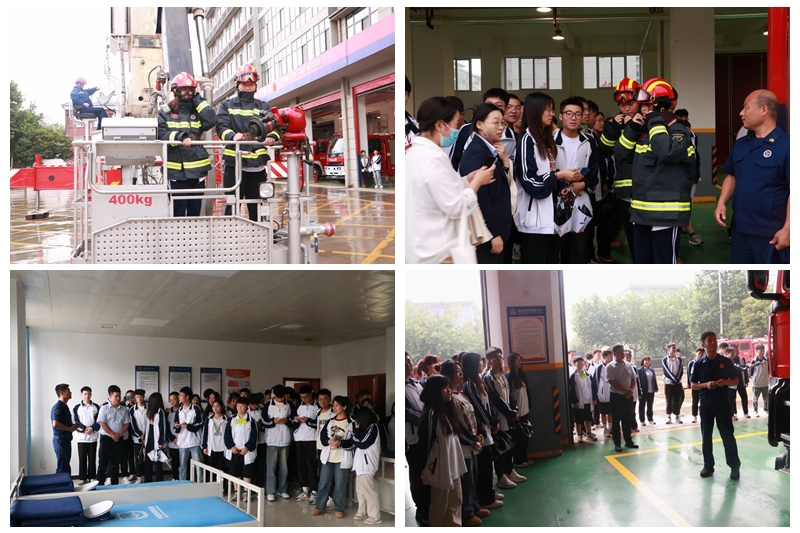 老师和同学们在消防队李指导员的带领下开展了消防安全知识培训。李指导员通过视频、图片,结合近期相关火灾事故,以案说法,全面介绍了日常生活中应注意的消防安全细节、如何扑救初期火灾、火中如何自救、逃生等知识和技能,师生们非常震撼、受益良多。随后参观了消防中队的各种消防设备和器具,消防官兵为大家讲解了战斗服的功能和用途,也让大家体验了身穿战斗服的感觉,大家纷纷表示更钦佩消防官兵,虽然背负厚重的消防服、氧气瓶和吊绳,却能在火灾现场与时间争分夺秒,快速奔跑,让在场的学生们深深感受到了消防战士的艰辛与付出。消防官兵还为大家介绍了不同消防车的功能和用途以及消防车上的设备和作用,让大家对消防车有了较为全面的了解。接着,大家参观了消防中队的宿舍,学习如何整理各项内务,特别是叠被子。随后让同学们体验了乘坐云梯车。