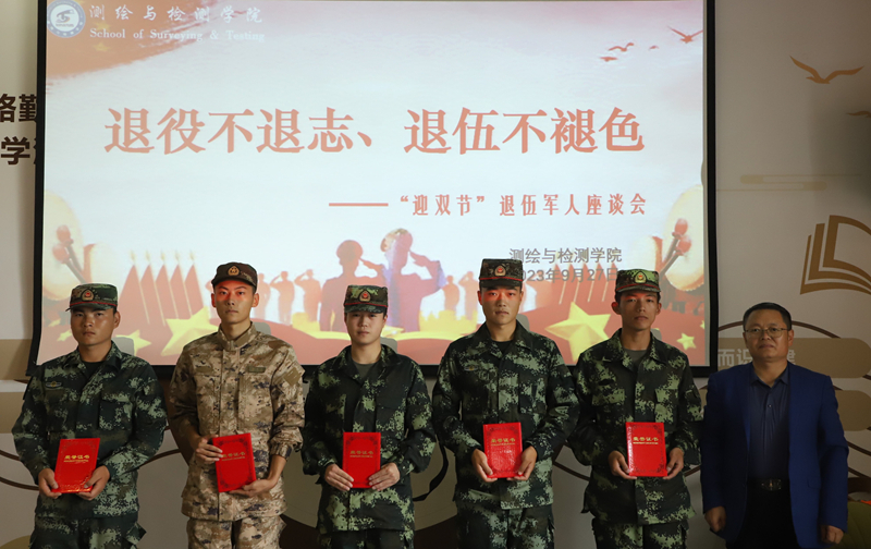 军训刚毕,“双节”将至,为总结2023级新生军训经验,巩固军训成果,喜迎中秋节和国庆节,9月27日中午,测绘与检测学院在教师发展中心举行“退役不退志、退伍不褪色”迎双节退伍军人座谈会。学院党总支书记杨江朋,2023级新生辅导员参加会议,12名退役大学生新生教官参加座谈会,会议由辅导员马婷主持。