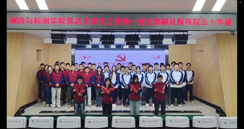 迎五秩华诞,展青春风采,在50年周年校庆即将来临之际,测绘与检测学院学生工作第一党支部组织党员在诚信厅开展“弦歌不缀五十载,砥砺奋进新征程”校庆系列特色主题党日活动。10月21日下午,支部全体党员以朗诵《铁路之梦,五秩风华》的形式为学校送上祝福。