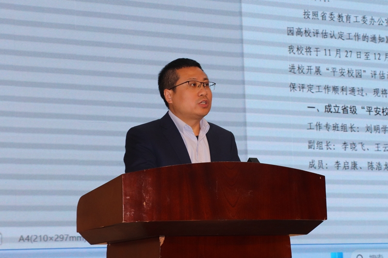 会上,后勤安保处处长李晓飞宣读了学校《关于做好迎接省委教育工委专家组进校开展2023 年省级“平安校园”评估认定工作的通知》。