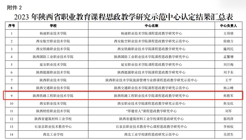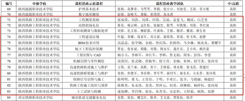 近日,陕西省教育厅发布了《陕西省教育厅办公室关于公布2023年陕西省职业教育课程思政示范项目认定结果的通知》(陕教职办〔2023〕53号),学校课程思政教学研究示范中心、《工程测量基础》等13门课程、张福荣团队等13个教学团队成功入选,课程入选数量位居陕西省前列。