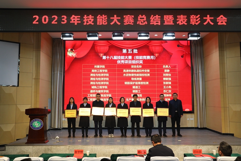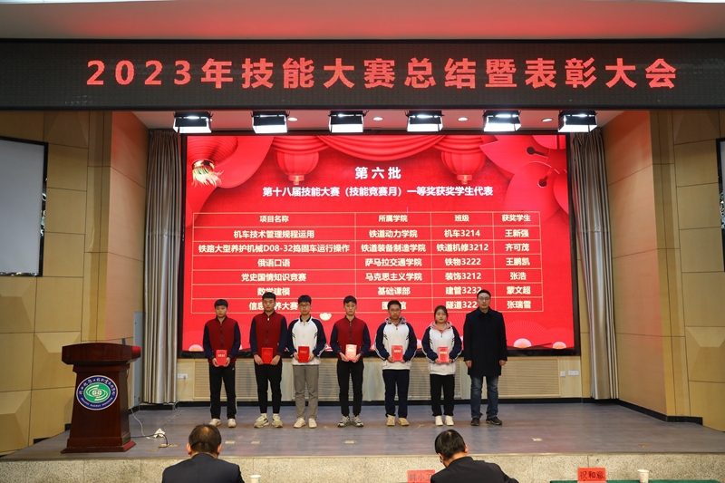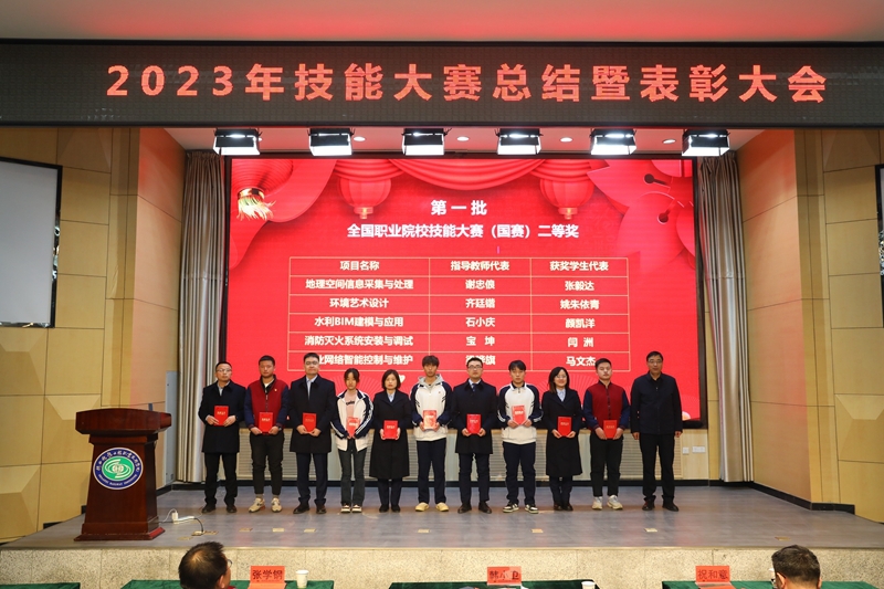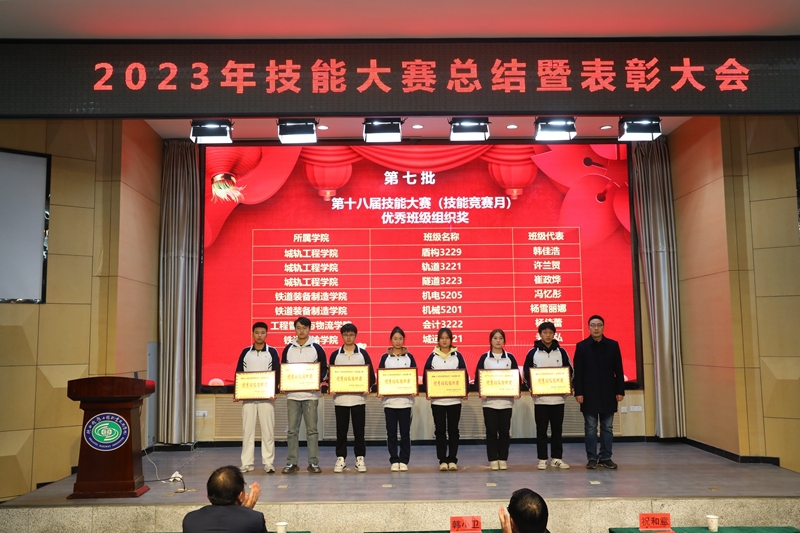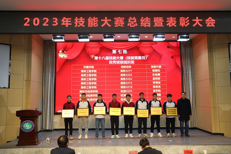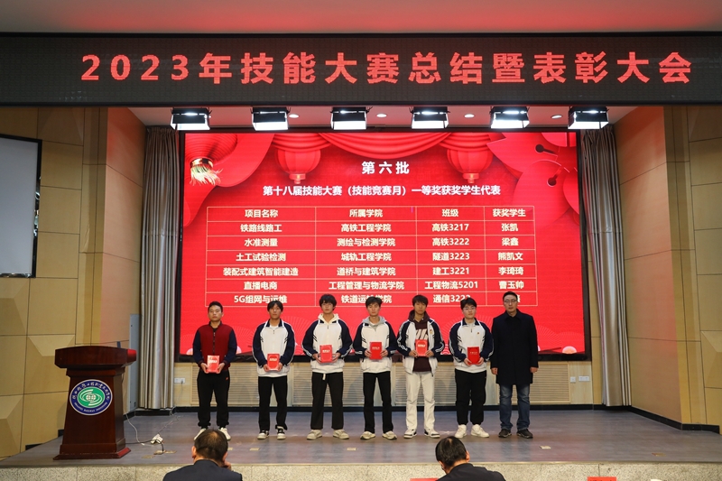 出席会议的校领导为国赛、省赛、学校第十八届技能大赛的获奖师生代表和集体代表颁发了荣誉证书和奖牌,鼓励他们在今后的学习和生活中继续加强技能训练,不辱使命,为校争光。工程管理与物流学院宝坤老师、铁道装备制造学院王冲老师、测量3217班张毅达同学作为获奖师生代表分表作了获奖经验分享发言,他们表示必须要研究国赛发展趋势、研读国赛规程、对标国赛标准,不断查漏补缺,进行靶向训练,重视理论和实操双重能力的发展;装饰3212班的郑楠同学代表2024年拟参赛代表作了表态发言,她表示:作为参赛选手,需要在比赛前做好充分的准备,包括了解比赛规则、熟悉比赛流程、掌握相关技能,比赛中,要保持冷静、自信,认真对待每一个环节;尊重对手,虚心学习,不断提高自己的技能水平。不怕苦、不怕累,发扬吃苦奉献、拼搏争先的铁院精神。