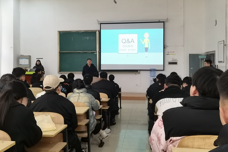 此次招聘会分为企业宣讲、现场提问、面试等三个环节。宣讲会上,公司人力资源部人事专员王晗播放企业宣传片,向同学们展示了企业成长与发展,以及现今规模等,并结合PPT从企业简介、公司项目、工作地点、薪酬福利、职业发展等方面向在场学生进行了详细讲解。在场学生就招聘岗位、工资福利、职工深造发展等与企业咨询互动,公司人力资源部经理杨晓峰、朔黄铁路运输处经理党波、朔黄铁路运输处副经理孙伟军等进行了耐心答疑,并根据自身工作经验对同学们进行了就业指导。