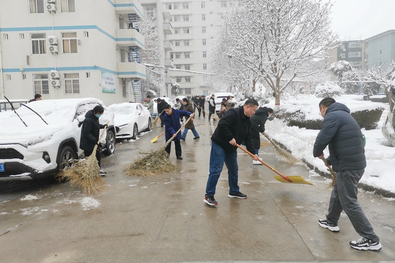 近日,我市普降大雪,范围广、雪量大,造成校园内道路积雪积冰,给师生员工出行、学习、工作等,带来不便和安全隐患。为做好校园安全防范工作,确保师生出行安全,1月17日上午,学校组织两校区师生开展了清雪除冰工作。
