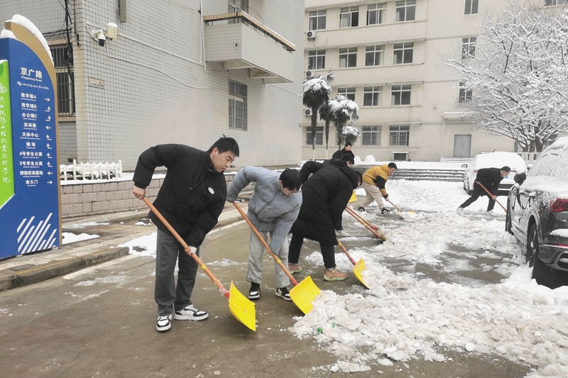 雪后显文明,扫雪我先行。此次扫雪除冰活动充分体现出学校师生团结一致、齐心协力的良好精神风貌。全校各部门认真抓好此次清雪除冰工作,落实清雪除冰工作责任制,做到“以雪为令、部门联动、即下即扫、及时清运”,高标准完成了清雪任务,保证了师生校园出行安全。(王莹/文 学生记者 师钊翼 田东锋 二级学院/图)