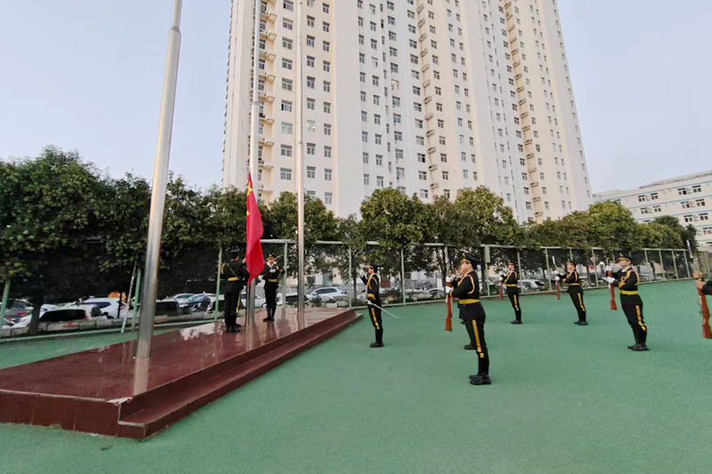 9月30日清晨,在第十二个国家烈士纪念日这个特殊时刻,护校队举行庄严升旗仪式。队员们身着制服,迈着铿锵步伐护送国旗入场。当雄壮的国歌奏响,鲜艳的五星红旗迎着朝阳冉冉升起,全体队员面向国旗行注目礼,既表达对革命先烈的深切缅怀,更以昂扬姿态向祖国76华诞致以崇高敬意。