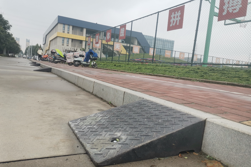 “这些斜坡垫看似不起眼,但解决了我们的大麻烦!”一名经常骑电动车上课的学生表示,“之前推车上台阶总得找人帮忙,现在有了斜坡垫,一个人就能轻松搞定。”后勤人员介绍,斜坡垫选用防滑材质,承重可达300公斤以上,既能保障自行车、电动车平稳推行,也能方便师生搬运重物,同时兼顾雨雪天气的防滑需求,真正将服务做到了“最后一米”。