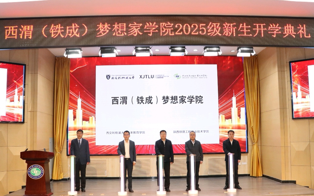 西渭(铁成)梦想家学院由陕铁院与西交利物浦大学联合打造,致力于构建产教融合、协同育人的新高地。首届学生共69人,将分别在高速铁路施工与维护、工程测量技术两个专业方向接受系统培养。西交利物浦大学、渭南市人民政府、中铁一局集团、中国铁路西安局集团及陕铁院的代表,共同为该学院揭牌。