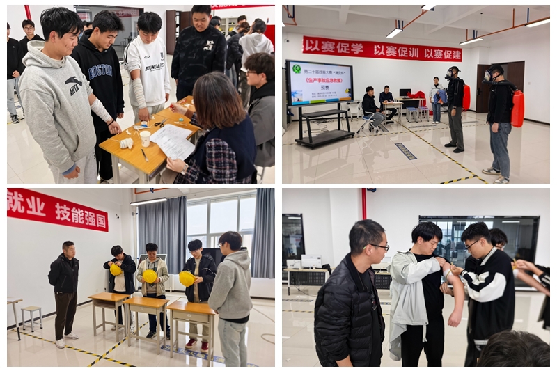 本赛项对接国家级技能大赛-生产事故应急救援赛项,采取现场实操的比赛形式,严格按照比赛要求执行。预赛包含三个考核项目,分别为安全帽正确佩戴、小臂止血包扎、正压氧气呼吸器正确穿戴,通过这次比赛学生巩固了安全知识,增强了安全意识,提升了应急救援技能,达到了较好的预期效果。(宝坤)
