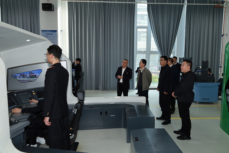 会前,祝曦一行在学校领导的陪同下,实地考察了学校机车模拟驾驶实训基地、高铁实训工区、隧道实训基地、盾构实训基地、安全实训基地、建筑实训基地、智慧校园指挥中心等场所。(吕康清/文 学生记者 赵翊凯/图)
