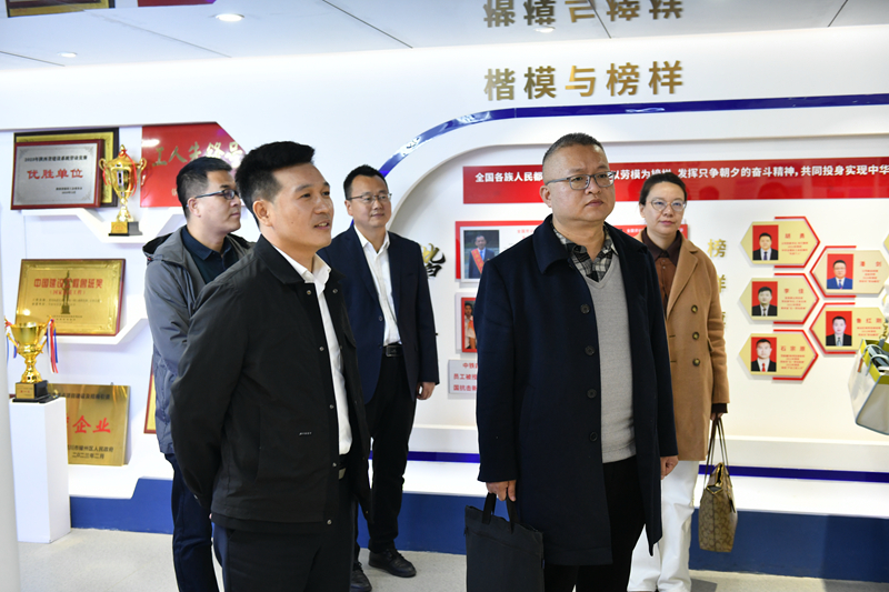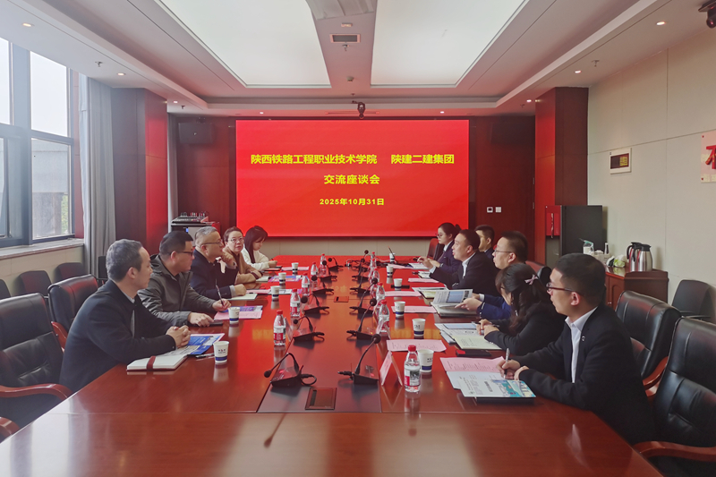 调研组参观了陕建二建集团业绩展厅,与公司党政办公室主任谢朝晖、人力资源部部长杨帆、科技创新部经理杨波、企业发展部副经理张小娟、招聘主管高会平、培训主管郑皓进行深入座谈交流。杨帆介绍了公司基本概况和主营业务,他表示陕铁院有18人在公司任职,多数人在管理岗位担任子公司负责人、项目负责人,表现优异。张玉鹏介绍了学校专业设置、科研与技术服务项目、技能鉴定特色等,双方围绕面向未来的企业员工培训课程开发、订单班组建等议题做了探讨交流,就后续密切校企联动,促进双方共赢达成了共识。