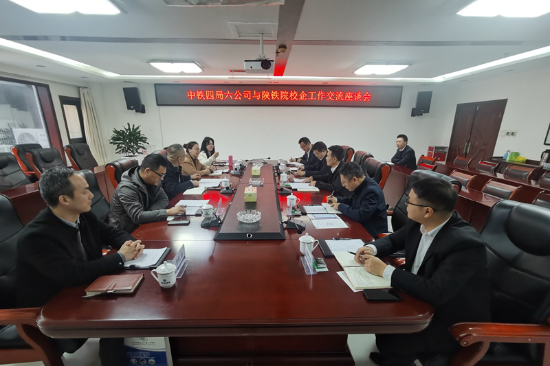 王辉辉介绍了公司的发展情况、人才培养、科研开展等内容。他表示,陕铁院毕业生在公司任职有147人,在工作岗位上能够吃苦耐劳、甘于奉献,大部分已经成为公司发展的主力。张玉鹏对中铁四局的企业文化建设和卓越业绩表示赞赏,对企业为陕铁院学子搭建成长发展平台表示感谢。并对学校近年来的发展成绩、服务企业项目等内容做了介绍。校企双方围绕合作方向展开研讨,就后续加强联系,共促发展达成共识。