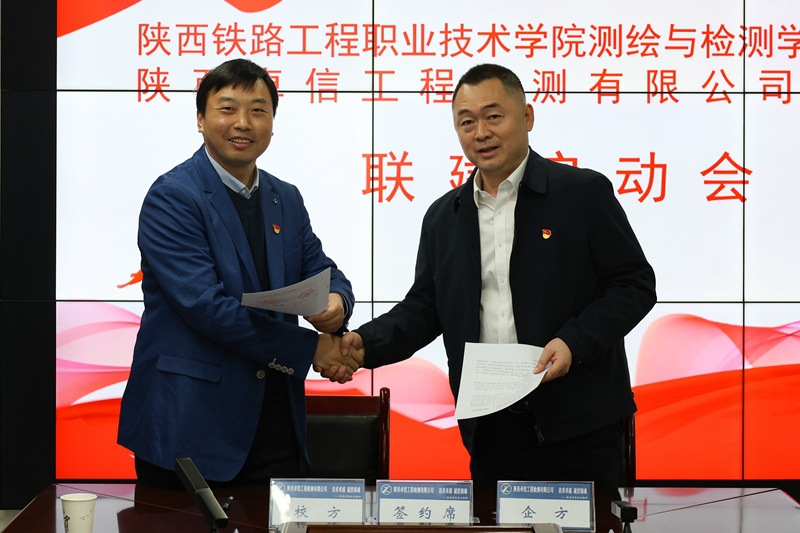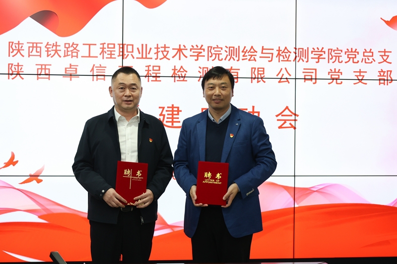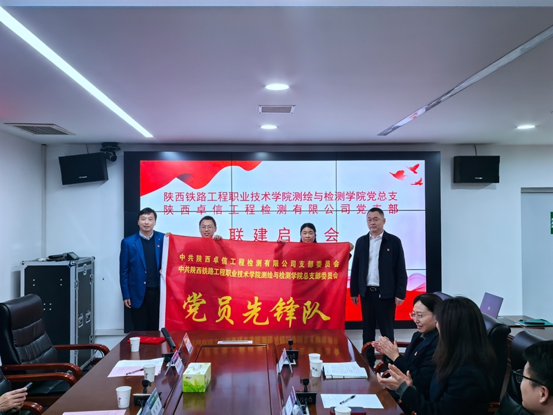 为深化校企合作内涵,以党建引领推动人才培养、技术创新与社会服务深度融合,11月5日下午,测绘与检测学院院长张福荣、党总支书记黄新静带领学院工程材料党支部、工程检测党支部全体教师党员,赴中铁一局陕西卓信工程检测有限公司(以下简称陕西卓信公司)共同举行党支部联建启动会仪式,标志着双方校企党建合作迈入新阶段。