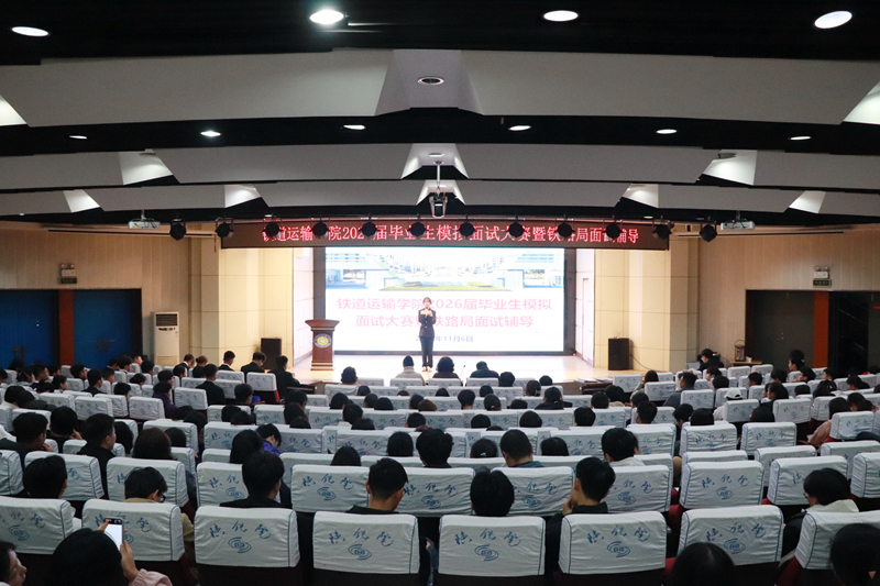 为提升毕业生就业竞争力,助力学生顺利走向职场,11月6日下午,铁道运输学院在临渭校区学术报告厅举办了2026届毕业生模拟面试大赛暨铁路局面试辅导活动。学院副院长蔡昱、就业指导中心牛新平老师、运营教研室耿雪老师及全体在校毕业生共同参与。