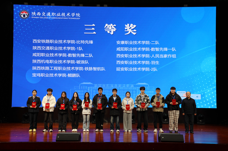 11月8日,由陕西省职业教育高等学校图书情报工作委员会主办的2025年陕西省高职高专院校“AI+信息素养”大赛在陕西交通职业技术学院文景校区举行,来自全省18所高职高专院校36支队伍共108名学生参与线下激烈角逐。学校铁脉智航队荣获省赛三等奖,学校荣获优秀组织奖。