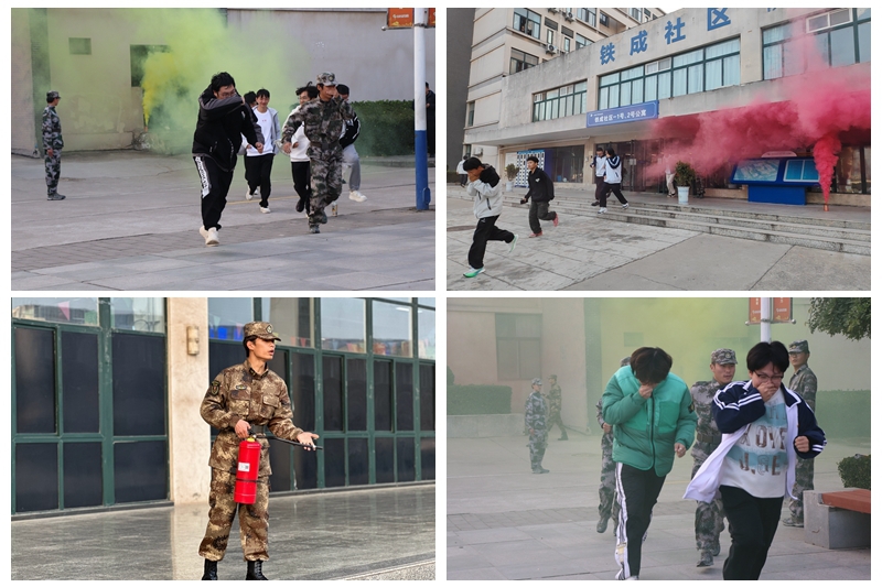 演练现场,红黄两色烟雾弹释放后,模拟火灾场景迅速形成,逼真的浓烟环境有效提升了演练的实战效果。在护校队员的专业指引下,新生们沉着冷静,严格按照“低头弯腰,用衣物捂住口鼻,沿疏散标识快速撤离”的要求,遵循预定疏散路线有序撤离。整个过程秩序井然,全体参演师生在短时间内安全抵达指定集结区域,圆满完成疏散任务。