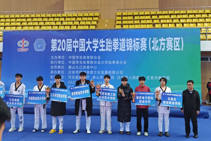 拳腿生风扬斗志,汗水铸就新辉煌。11月16日,在河北迁安举办的第20届中国大学生跆拳道锦标赛(北方赛区)落下帷幕。学校学子在强手如林的激烈角逐中不畏强手、敢打敢拼,最终斩获一枚银牌、一枚铜牌及多项优异名次,男子个人比赛团体总分在全国职业院校中排名第三,取得了竞赛成绩和精神文明双丰收,展现了新时代青年学子蓬勃向上的精神风貌。