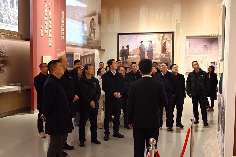 在讲解员的引导下,党员们依次参观各展区,认真聆听革命先辈在陕甘边根据地开展土地革命、建立基层政权、领导反“围剿”斗争的英勇事迹。在“中流砥柱”展区,习仲勋同志使用过的马灯、手稿等实物展品引得党员们驻足凝视,展区复原的“窑洞办公室”让大家仿佛看到了老一辈革命家深夜伏案、心系群众的身影,深刻感悟到 “坚守信仰、艰苦奋斗、为民担当”的马栏精神内涵。