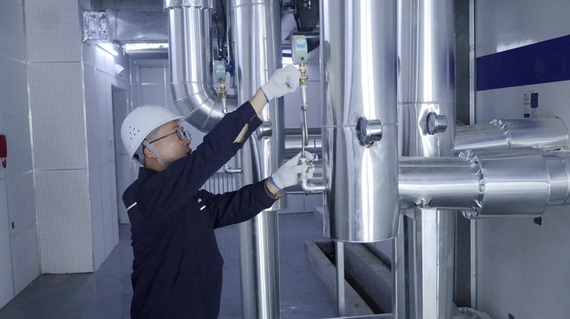 检修工区工长叶剑阳对组合式空调机组压力表的安全性能进行检查测试
