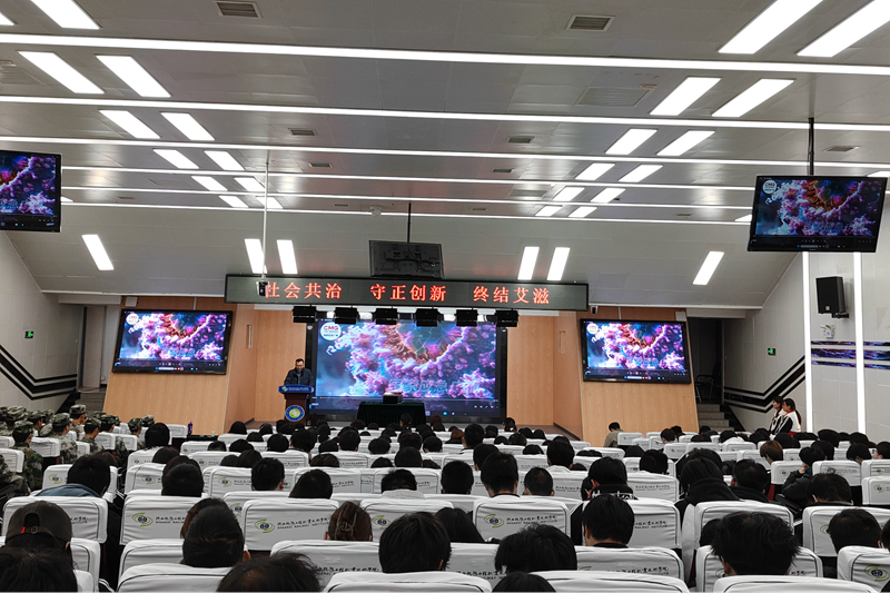 在高新校区主会场,渭南市疾病预防控制中心艾滋病防治科科长许雷涛应邀为三百余名师生作“筑牢青春防线”主题讲座。讲座围绕“认识、传播、预防、检测治疗、消除歧视”的逻辑主线,系统讲解了“艾梅乙”的防治知识。