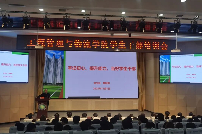 为进一步加强学生干部队伍建设,提升学生干部的责任意识与综合能力,12月1日下午,工程管理与物流学院在高新校区博爱厅举行学生干部培训会。学生处副处长黄阿岗老师担任主讲嘉宾。培训会由学工办主任李红春主持。全体无课学生干部到场参加培训。