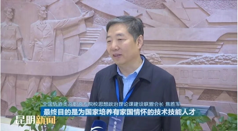 会议期间,焦胜军受到昆明新闻的采访,在采访中讲到“这次非常好地把思政课的建设和专业建设融合起来,搭建一个平台,使课程思政和思政课程完美融合,最终目的是为国家培养有家国情怀的技术技能人才。”