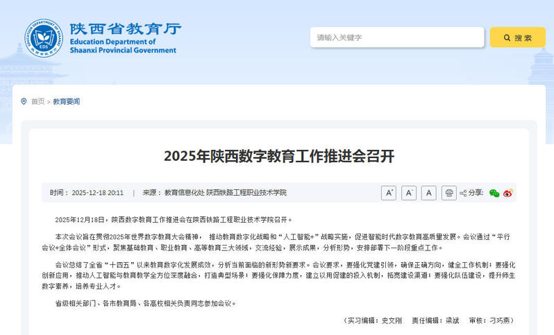 2025年12月18日,陕西数字教育工作推进会在陕西铁路工程职业技术学院召开。