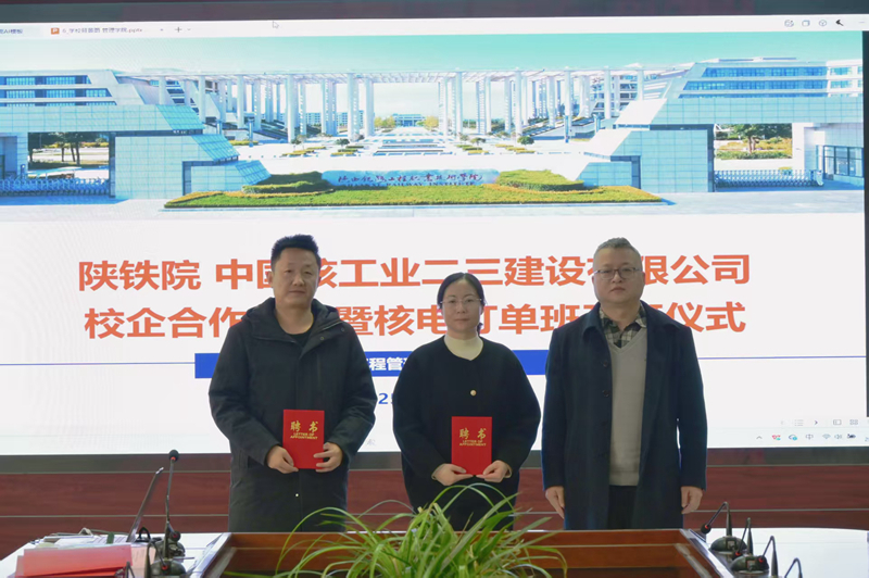 12月23日,学校与中国核工业二三建设有限公司校企合作签约暨核电订单班开班仪式在高新校区北三楼会议室举行。学校副校长祝和意、校企合作处处长姜留涛、工程管理与物流学院院长叶超、党总支书记张玉鹏,以及中核二三公司连云港项目部管道队党支部副书记张艳、人力资源部主管冯哲,山东华成核建工程服务有限公司副经理姜宁等出席仪式。仪式由工程管理与物流学院副院长杨小玉主持。