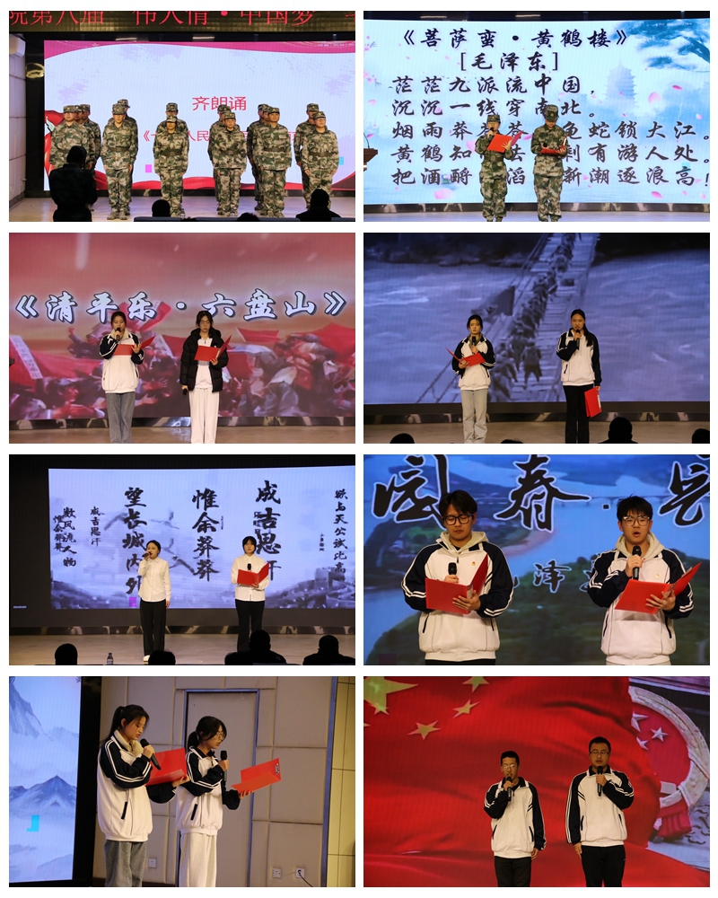 高新校区护校队也于12月23日晚举办了同一主题的朗诵活动。“伟人情·中国梦”毛泽东诗词朗诵会作为我校护校队持续举办八年的品牌活动,已成为校园红色文化育人的重要载体。学校将继续深化红色文化教育,创新活动形式,引导广大师生从红色经典中不断汲取前进动力,努力成长为担当民族复兴大任的时代新人!(李鸿彬/文 帅忠良 张金强/图)