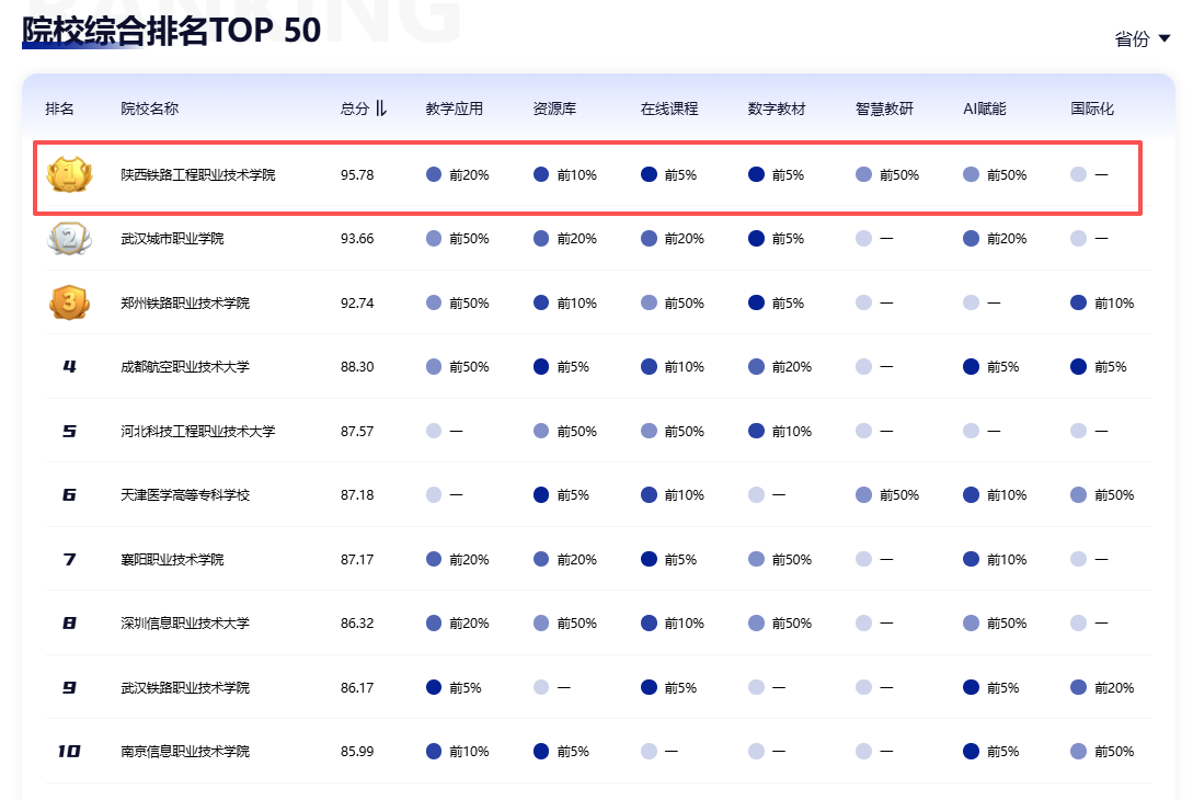 智慧职教icve平台是由高等教育出版社建设运营的国家职业教育智慧教育平台核心板块,也是国家“职业教育专业教学资源库”项目成果共享指定平台。该平台聚焦职业教育数字化教学资源共享、在线教学服务与院校数字化建设评估,其发布的榜单基于全国职业院校年度应用大数据编制,评估维度涵盖教学应用、资源建设、在线课程、智慧教研、AI赋能、国际化发展等多个核心领域,是衡量全国职业院校数字化发展水平的重要权威参考。