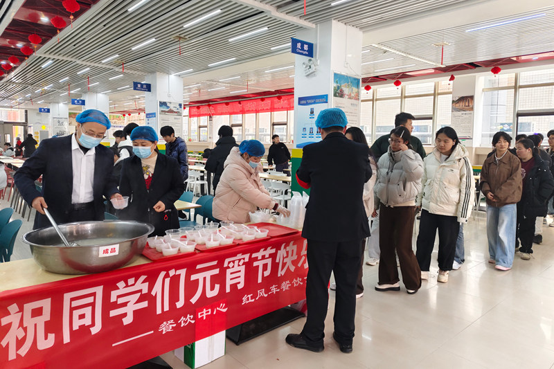 活动期间,两校区各餐厅内暖意融融,秩序井然。工作人员热情地为前来就餐的师生递上热气腾腾的汤圆,一句句“元宵快乐”“新学期顺利”的祝福,让返校的学生们感受到了“幸福铁院”的人文关怀。
