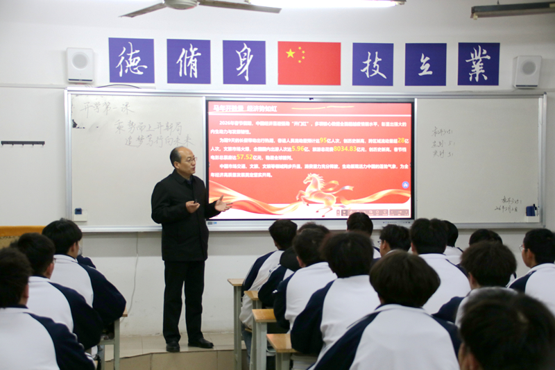 班会紧扣时代脉搏,回顾2026年春节中国经济“开门红”、外贸“新三样”领跑、AI大模型融入生活等成就,分析国际形势,引导学生坚定报国志向。聚焦行业发展,介绍了“十四五”铁路里程突破16.5万公里、CR450动车创时速453公里世界纪录等重大成果,增强学生的行业自豪感。
