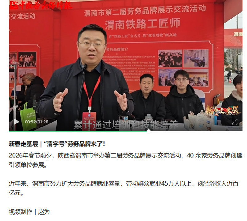 陕西铁路工程职业技术学院就业指导中心主任姜留涛:渭南铁路工匠师劳务皮牌,累计通过培训和技能培养,带动就业九万多人,他们因“下得去、留得住、用得上、干得好”而深受企业好评。陕西铁路工程职业技术学院学生代表:通过渭南铁路工匠师的打造与专业技能培养,我在乌鲁木齐签约了一家与专业契合度较高的工作,同时在我们班都通过渭南铁路工匠师签约与自己专业契合度较高的工作。链接:https://mp.weixin.qq.com/s/4MI8LKhAQv0OKw7PKsrHwg