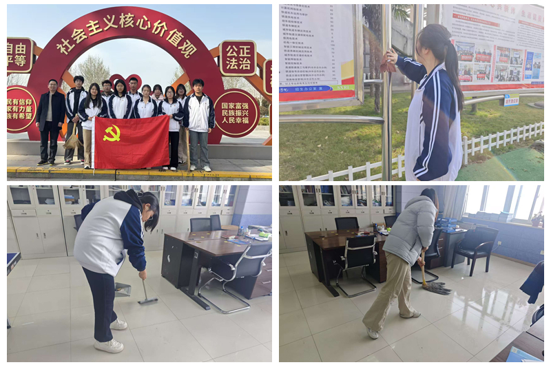 活动伊始,全体学生党员手持抹布、扫帚、垃圾钳等清洁工具,积极投身义务劳动。大家分工明确、协作有序,首先对校园内的宣传栏进行全面擦拭,清除积尘污渍,维护校园信息窗口的整洁美观。最后,部分党员前往教师办公楼,主动帮助打扫办公室卫生、整理桌椅,为老师营造更加舒适的办公环境。