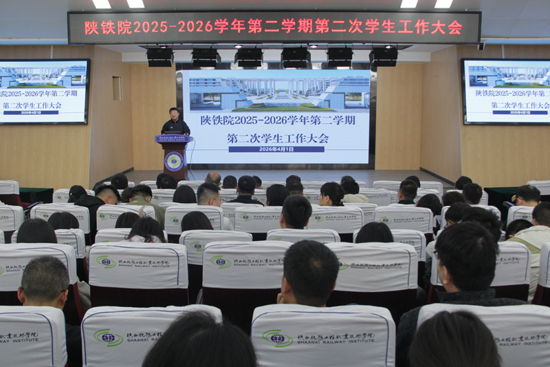 4月1日,陕铁路院在高新校区诚信厅召开2025-2026学年第二学期第二次学生工作大会。就业指导中心、后勤保障与安全保卫处、学生处、校团委相关负责人,各学院党总支书记、学工办主任、全体辅导员及学生处、校团委全体工作人员参加会议,会议由学生处处长陈明明主持。