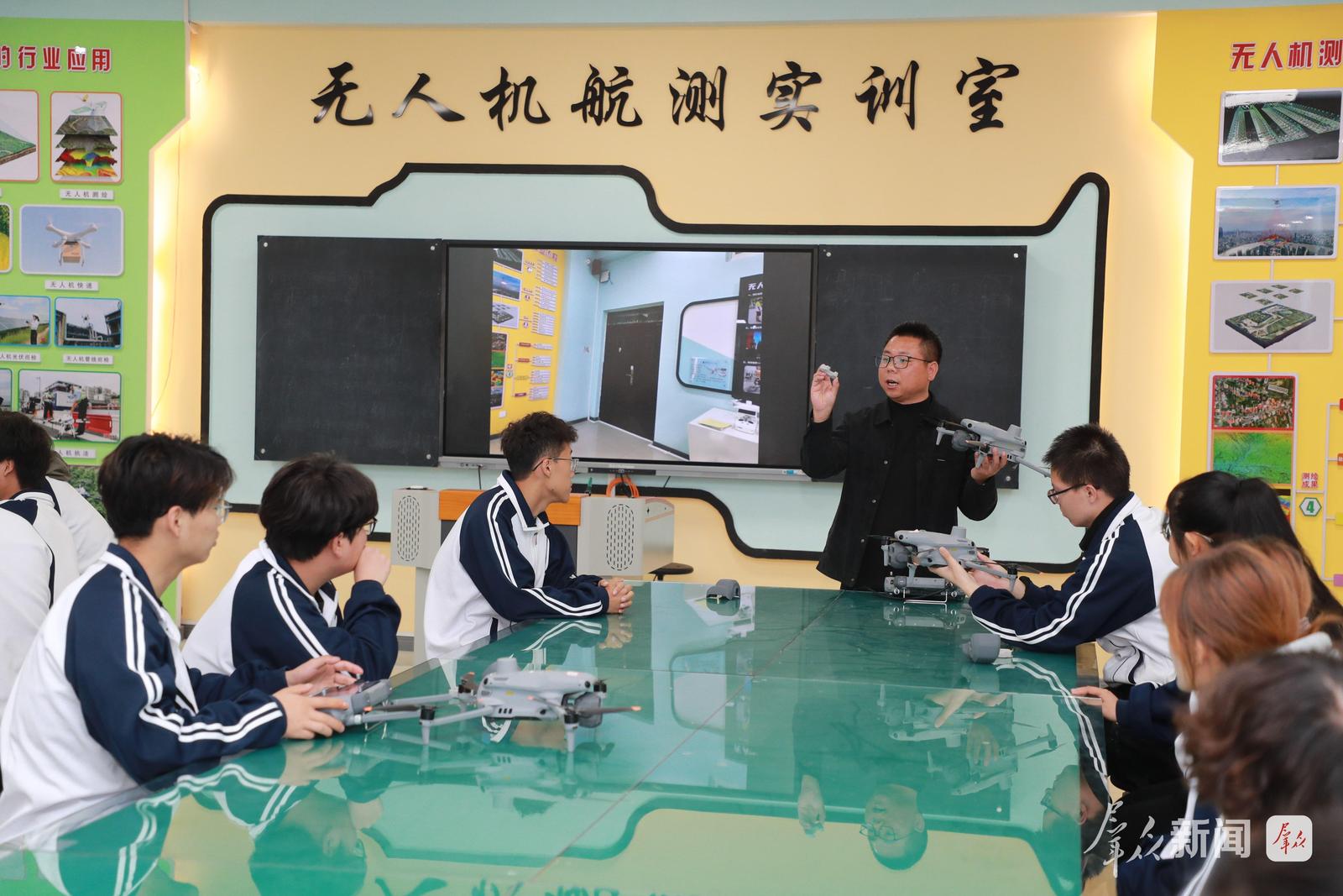 4月21日,陕西铁路工程职业技术学院无人机航测实训室,老师给学生讲解无人机有关知识。