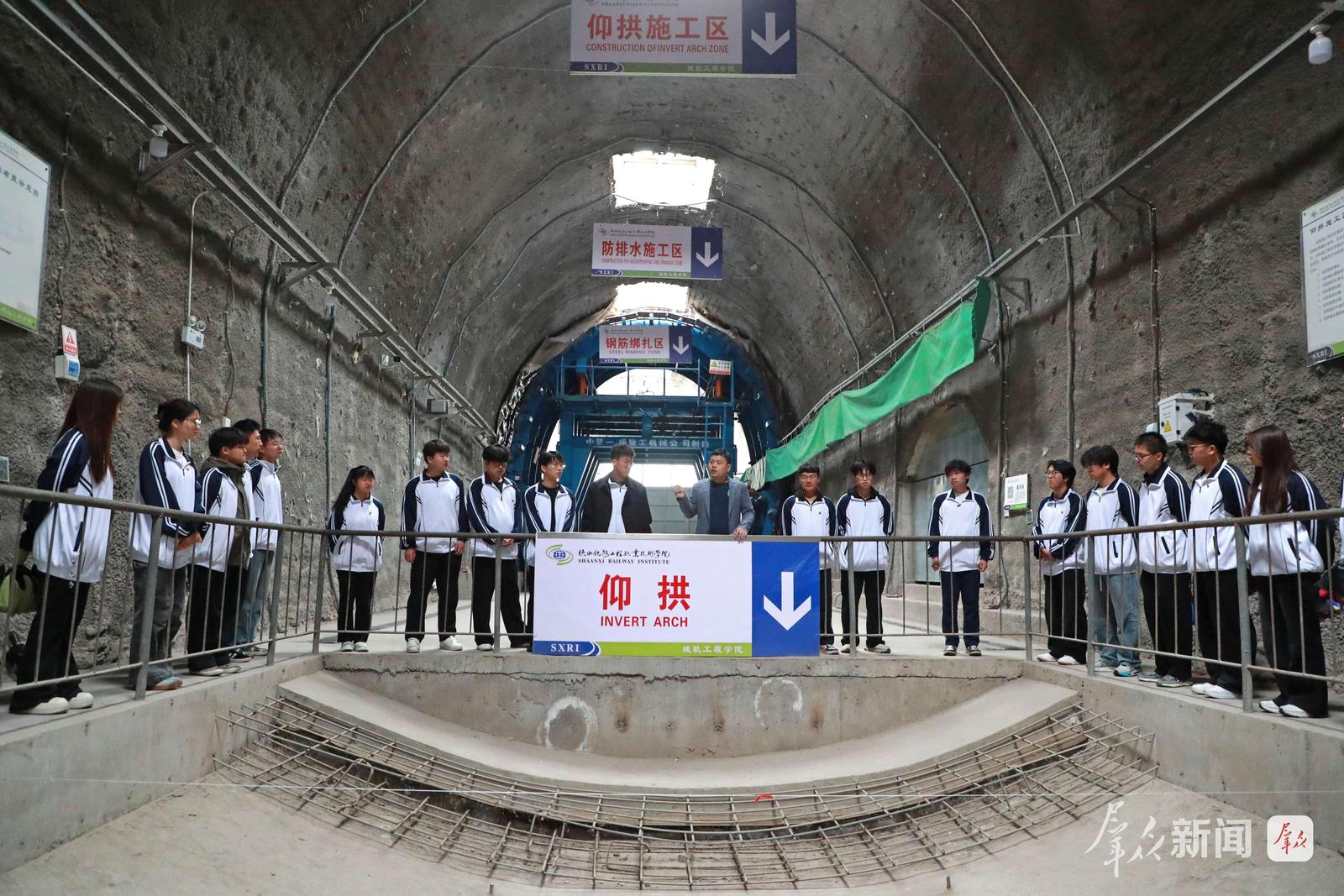 4月21日,陕西铁路工程职业技术学院隧道实训基地,老师给学生讲解仰拱制作、铺设和测量。